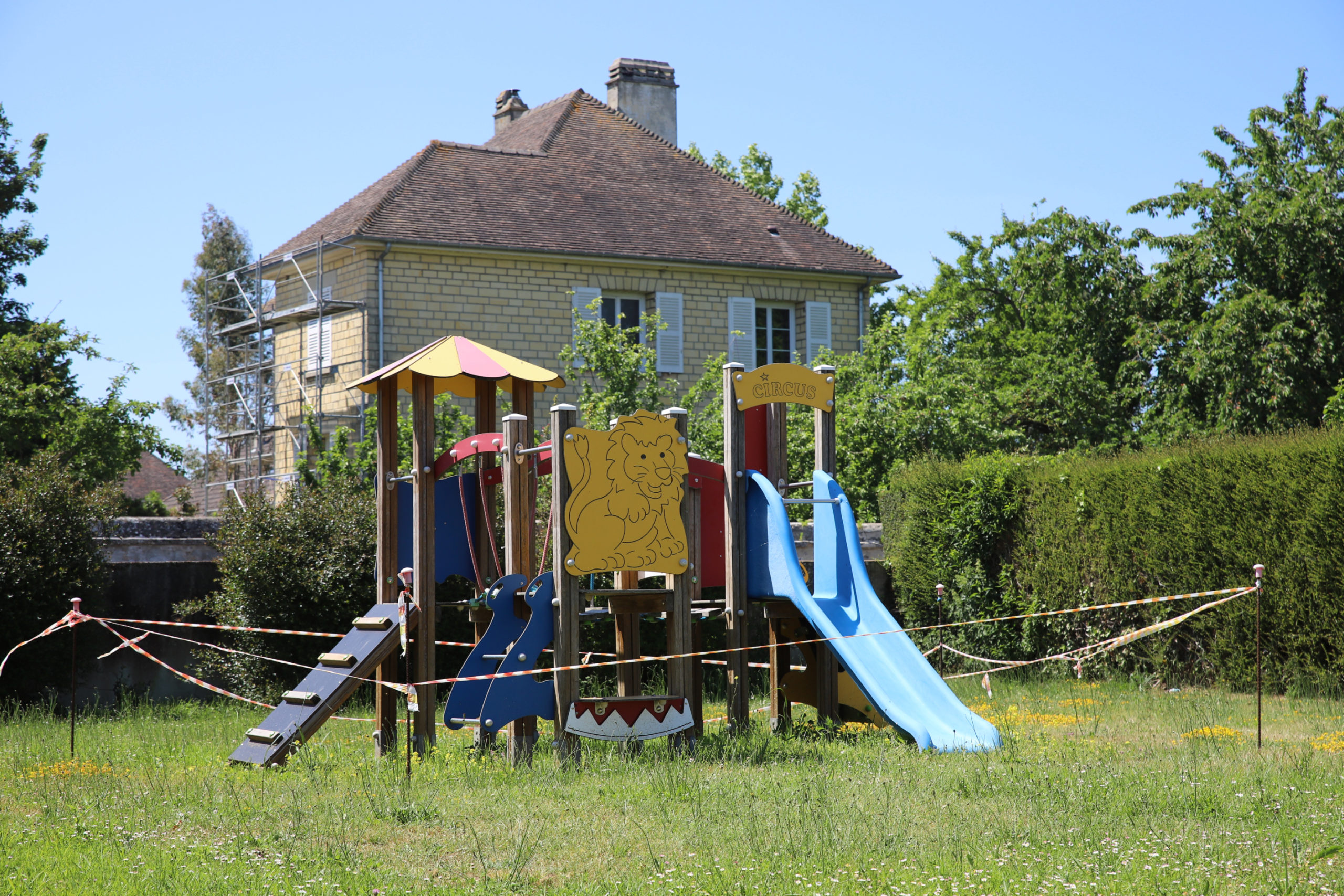 Située sur l’artère principale du Bourg, non loin de l’église, l’aire de jeux, basée sur le thème du cirque et prévue pour les enfants de 2 à 8 ans, se compose de trois tourelles en bois reliées par des ponts suspendus.