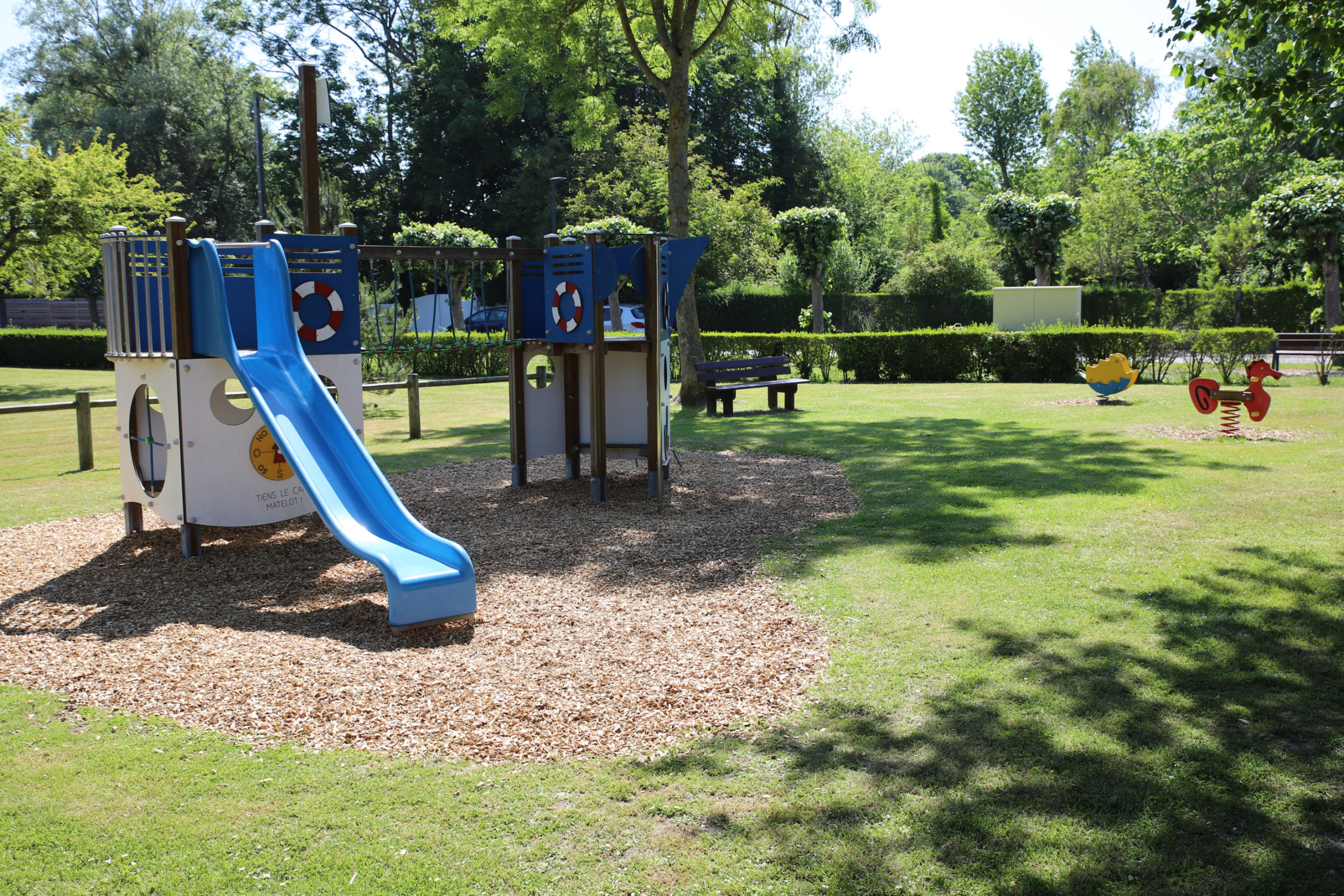 Deux jeux sur ressort (un hippocampe et un bateau) sont également disponibles sur le lieu pour les plus de 2 ans.