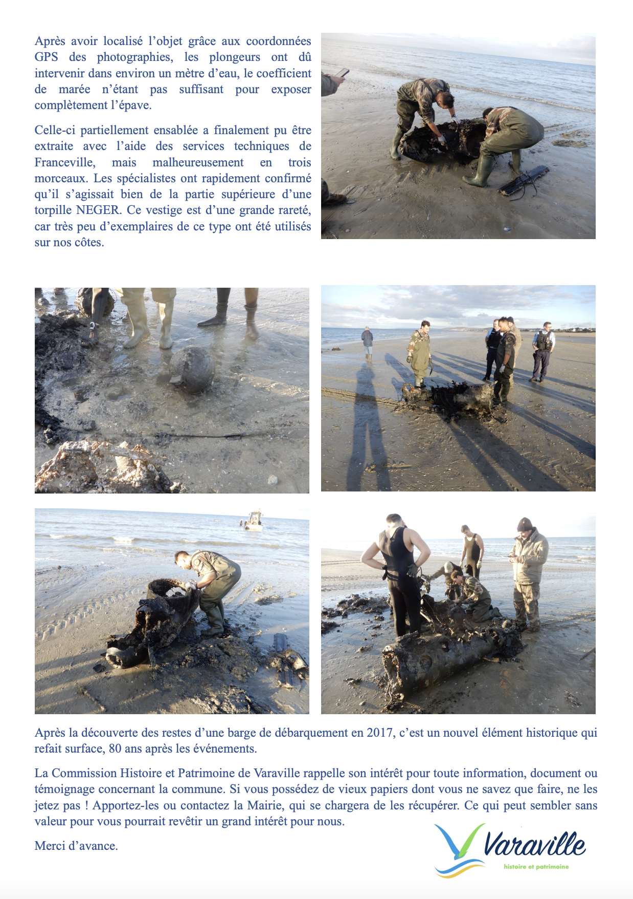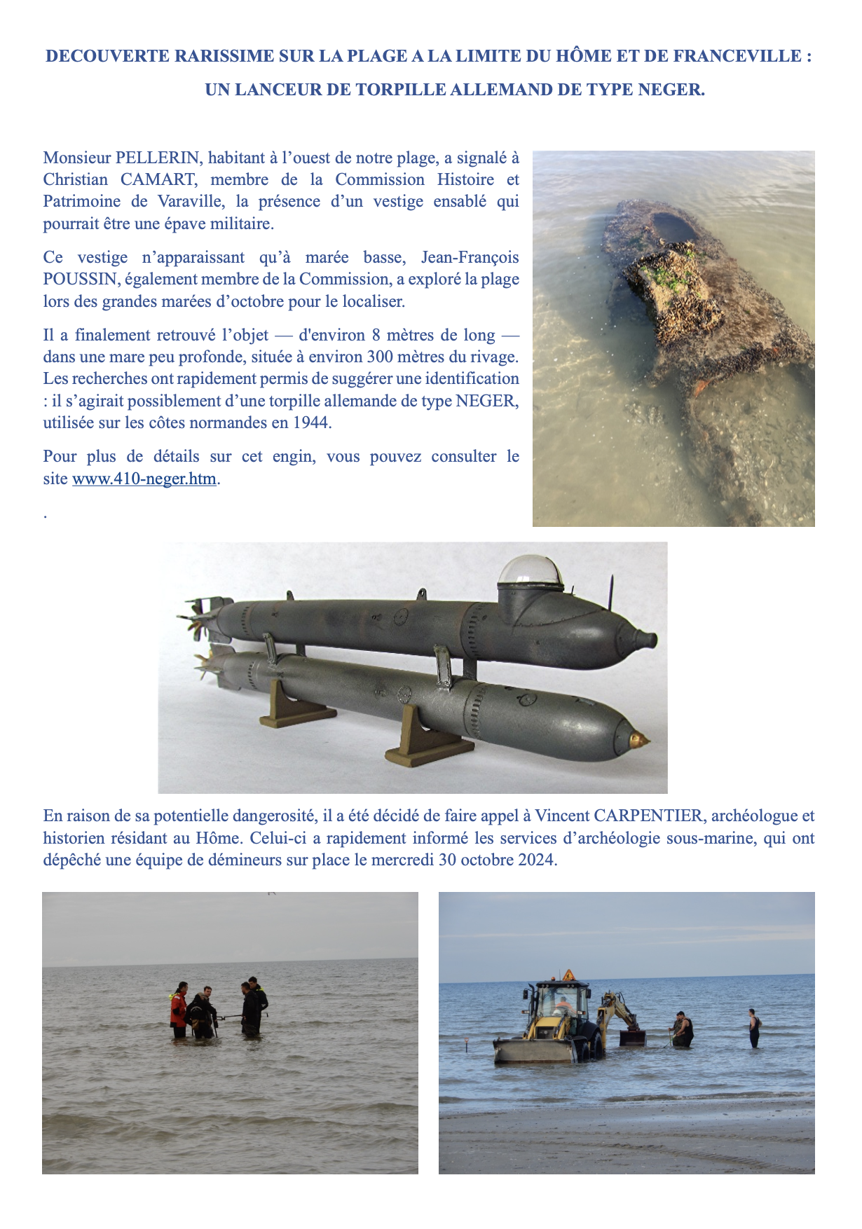 Vous êtes ici : Accueil » Mon quotidien » Les actualités » Découverte sur la plage à la limite du Hôme et de Franceville d’un lanceur de torpilles allemand