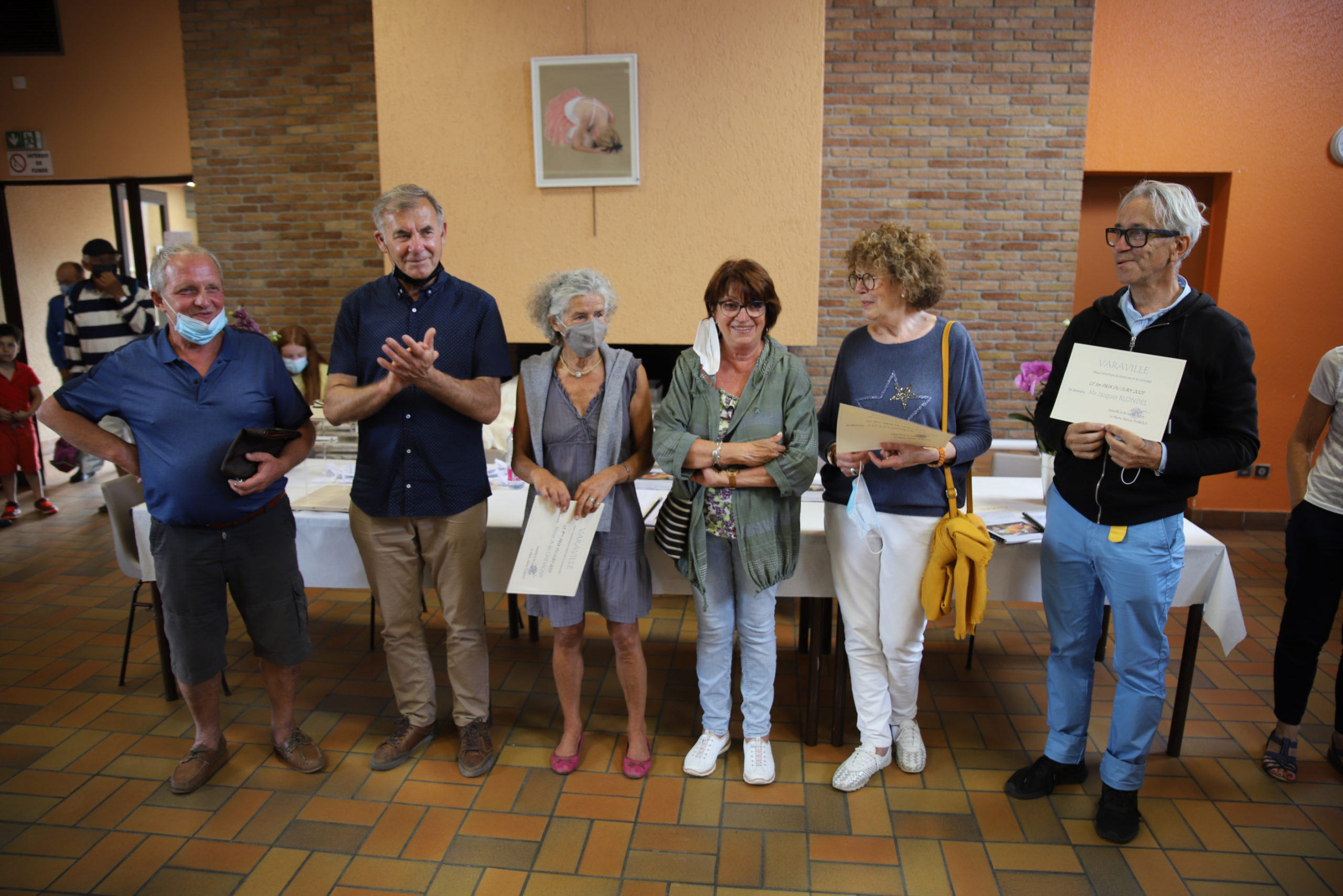 Les lauréats de l’exposition de peinture et sculpture 2021, en compagnie du maire de Varaville.