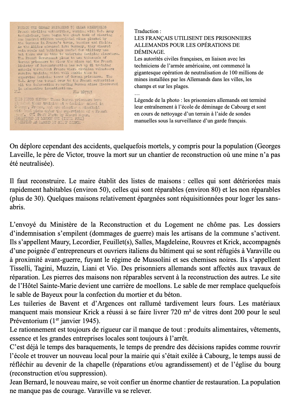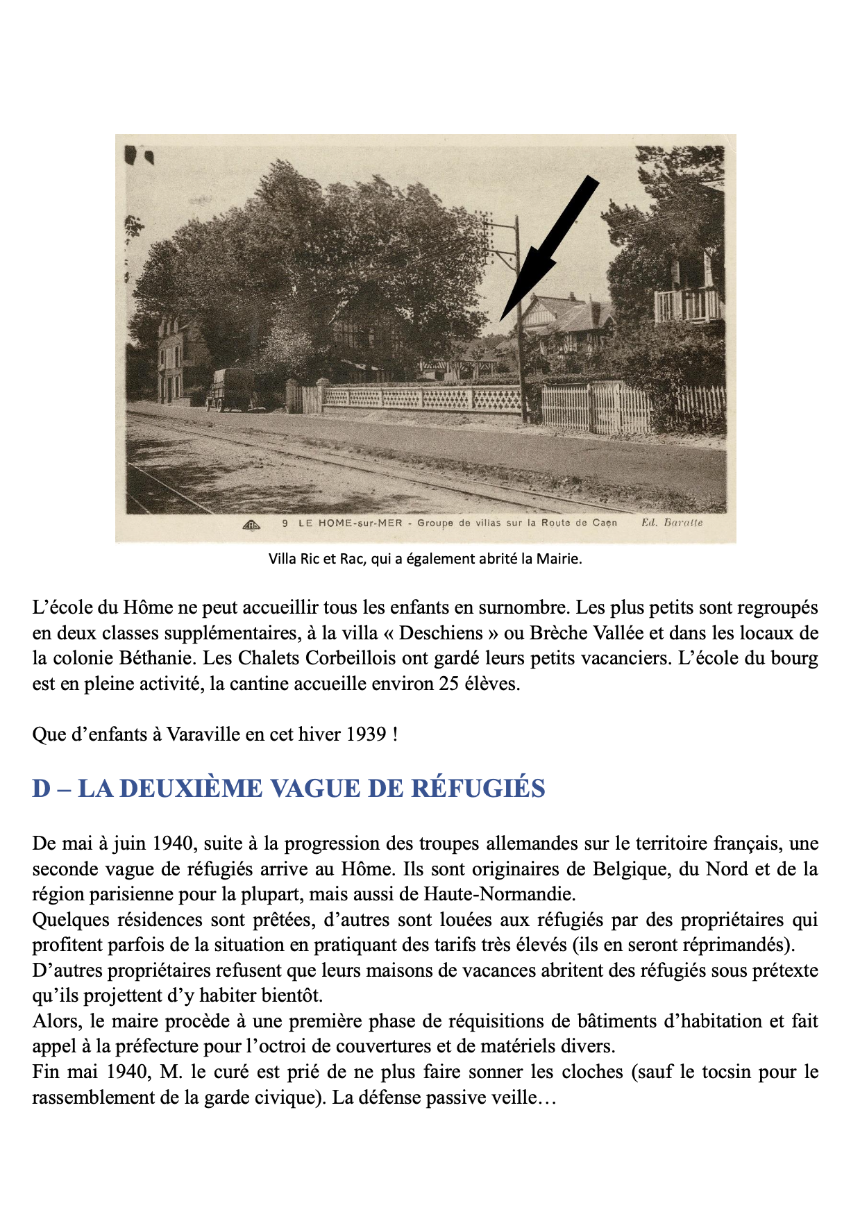 « Au cours de l’été 2022, la commission Histoire et patrimoine a été amenée à organiser une exposition de 220 cartes postales anciennes et commentées. Avec plus de 2 000 visiteurs, ce qui est inhabituel pour notre petite commune, l’accueil a été particulièrement chaleureux. Lors de sa visite, Françoise Dutour des Éditions du Pays d’Auge nous a proposé d’en faire un livre. Séduits par l’idée, avec Christian Camart et Jean-François Poussin, deux co-auteurs passionnés de cartes postales anciennes, nous nous sommes mis alors à exploiter leur importante collection. La découverte de documents inédits, les recherches et leurs connaissances nous ont permis ensuite d’aboutir à ce bel ouvrage. De la photo inédite d’un groupe d’enfants recueillis au Grand Hôtel en 1915 par le Comité franco-américain de la Croix Rouge aux plans exceptionnels réalisés par l’architecte André Bourdon vers 1910 sur la villa Chante au Vent et l’Oasis, en passant par une photo de classe de 1934 avec les noms de tous les élèves indiqués de mémoire par la doyenne centenaire de la commune, les lecteurs découvriront au détour des pages une facette méconnue et attachante de Varaville »