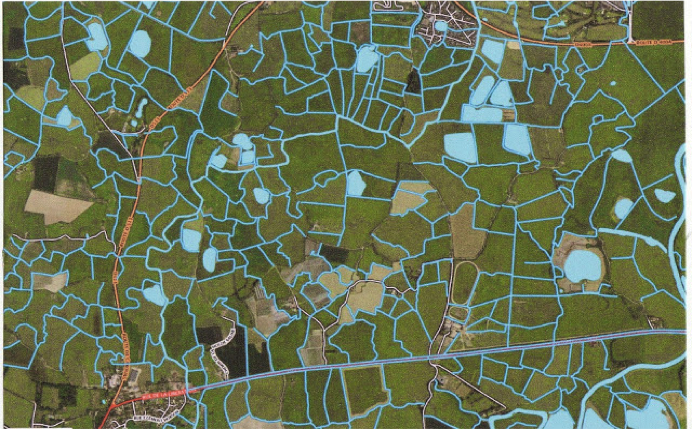Plan du marais. En bleu, les canaux et les mares à gibiers – Document I.G.N.