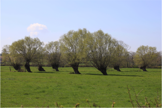 Le marais est aujourd’hui sillonné par un dédale de chemins long de 35 kilomètres. Aulnes, saules, peupliers, aubépines, ormes, pruneliers bordent ses fossés, protègent du vent, régulent les eaux et fixent les berges. L’eau des fossés permet l’irrigation des champs et l’abreuvage du bétail. Elle est gérée grâce à un vannage, système de régulation, passant par la Divette puis la Dives. Peupliers noirs et saules blancs hantent le paysage : ce sont les « trognes », arbres têtards appelés aussi « têtus ». Les cavités de leurs troncs sont des réservoirs de biodiversité. Ils ont fourni autrefois bois de chauffage ou osier pour la vannerie.