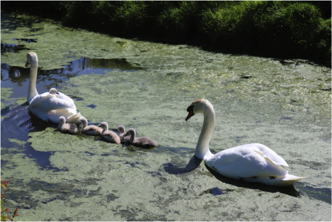 Couple de Cygnes et ses Cygneaux (le cygne est un animal qui existait déjà il y a 130 millions d’années) © JL Pouille