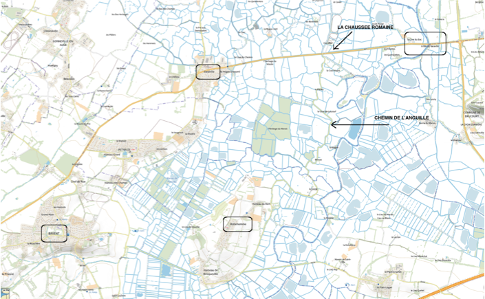 Pendant que l’armée royale avance, Guillaume divise son armée en deux. Une troupe de cavaliers est envoyée au sud pour traverser les marais par un gué à Robehomme, puis remonter au nord en utilisant le chemin de l’anguille pour prendre la colonne française de flanc (là où se trouve actuellement la stèle). Guillaume lance alors ses troupes et charge l’arrière-garde commandée par le comte du Berry, sous une pluie de flèches tirées par ses archers invisibles. C’est l’hécatombe : les chevaux s’emballent et piétinent tout sur leur passage, bousculant les troupes engagées sur la chaussée qui tombent à l’eau et se noient.