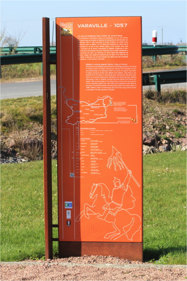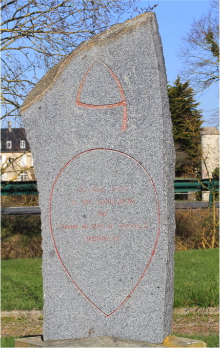 Une stèle de granit commémore en bordure du chemin de l’anguille et de la D27, la bataille de notre illustre normand.