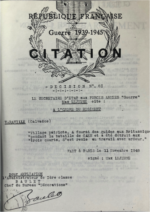 Dans la nuit du 5 au 6 juin 1944, a lieu le bombardement des batteries de Merville, une erreur de frappe l’envoie à Gonneville en Auge. A Varaville, on aperçoit de gros avions tirant des planeurs volants au raz de la mer et se dirigeant vers l’estuaire de l’orne.