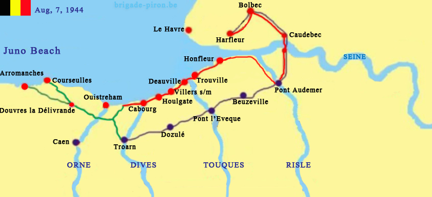Le 17 août, l’opération Paddle est lancée : les parachutistes et les commandos britanniques, avec le soutien de la 1ère Brigade d’Infanterie belgo-luxembourgeoise, la brigade Piron, (sous le commandement de la 6éme division aéroportée britannique, dépendant du 1er corps britannique et lui même dépendant de la 1ère Armée Canadienne  du Général canadien Harry Duncan Crerar) avancent en direction de la Seine. La division est scindée en deux. La route de la Côte vers Honfleur est confiée aux Belges de la Brigade du colonel Piron. L’autre route, au sud est confiée aux autres Bérets rouges et commandos qui iront vers Pont-l’Evêque et Pont-Audemer.