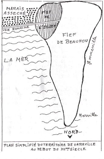 C’est sans doute à l’initiative du roi d’Angleterre Henri I de Beauclerc (1068-1135) le 4éme fils de Guillaume le Conquérant, roi d’Angleterre en 1100 et duc de Normandie en 1106 que vers 1100 dans une charte, Guillaume, comte d’Évreux, fait don du fief de l’église de Varaville et du fief salinier à l’abbaye de Troarn au détriment de son vassal, Robert II de Beaufou et du gérant Radulphe . Celui ci conserve néanmoins la plus grande partie du territoire restant à défricher.