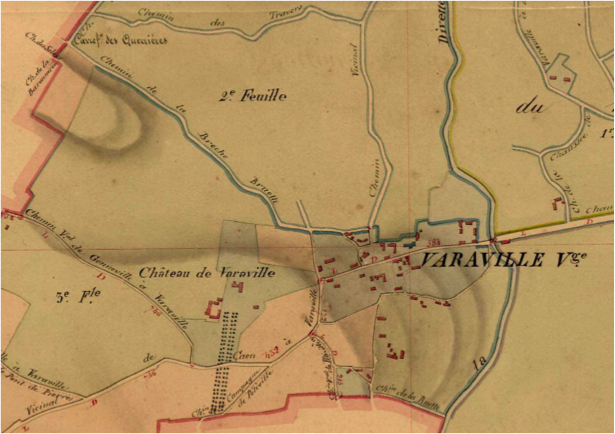 Sur le cadastre de 1826 on retrouve le « chemin vicinal » qui deviendra la route de Caen