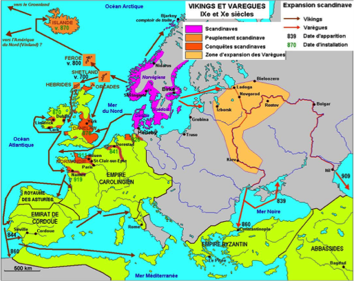 A partir de 860, de grandes armées de vikings (en dialecte scandinave: vikingar) venues d’Angleterre lancent des raids dans la basse Seine et alentour. Ils en viennent rapidement à hiverner sur place, sur des îles de la Seine ou dans de petits ports, depuis lesquels ils partent, en bateau ou à cheval, piller villes, abbayes et églises. Il est fait mention à plusieurs reprises de la présence de bandes vikings dans l’estuaire de la Dives entre 860 et 911. De leur base, ils partent en expédition vers Chartres ou Paris. Ils entassent leurs butins le long des côtes sur des petites îles ou presqu’iles facile, à défendre. Situé là ou se trouve la ferme et la cour de la maison, le « Holme » de Varaville fut certainement l’une d’entre elles. On ignore quelles relations ils entretiennent avec les locaux : violentes ou amicales ?