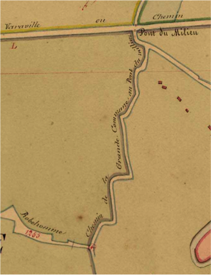 Ainsi nommé a cause de son aspect serpenté à moins que ce ne soit comme à Saint Sulpice de Grimbouville à cause des anguilles qui peuplaient abondamment le marais. En tout état de cause l’appellation est récente car en 1826 le chemin s’appelait « chemin de la grande commune du pont du milieu ». Lorsque vous emprunterez la route sinueuse du chemin de l’Anguille, arrivé au lieu-dit « La Londe », vous verrez la tombe de M. Haubry grâce à qui, les marais de Robehomme sont devenus des pâturages. Ingénieur en chef des travaux maritimes du Havre il a aménagé les canaux de Robehomme et a demandé, à ce titre, le privilège d’y être enterré. Son inhumation au cœur des marais en 1803 provoqua de nombreuses protestations dont celle du curé du village qui s’éleva contre l’autorisation accordée par l’évêque de Bayeux d’être enterré en ce lieu.