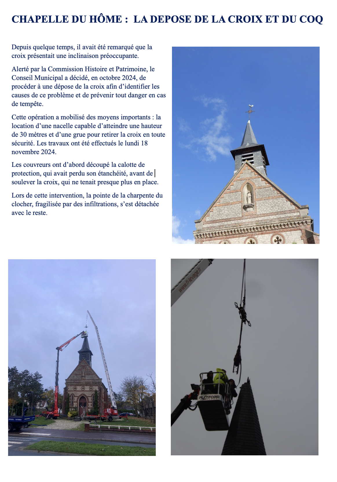 Vous êtes ici : Accueil » Mon quotidien » Les actualités » Le Hôme: la dépose de la croix et du coq de la chapelle Saint-Joseph